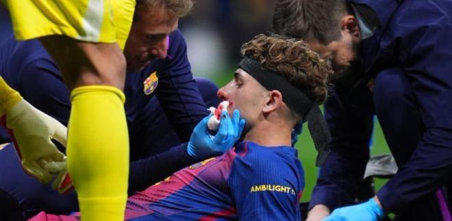 费尔明则留在室内健身房训练,避免唇部遭到撞击或与队友发生碰撞,这名球员在大都会球场意外被胡安-穆索踢伤唇部并接受多针缝合,返回巴塞罗那后又接受了后续伤口护理。