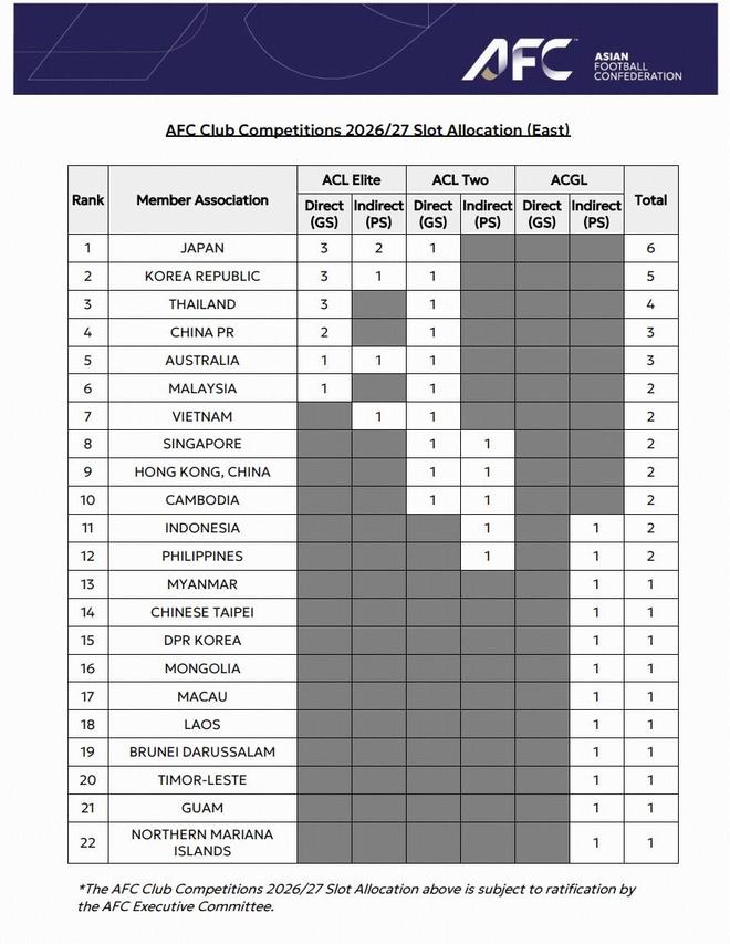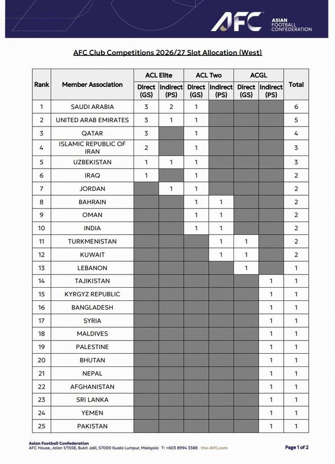 本次《2025 版准入规程》修订内容仅适用于 2026/27 赛季。亚足联精英冠军联赛参赛队伍由24支扩军至32支的全新赛制,规程同步调整各会员协会参赛席位分配方案,划定各协会席位上限。